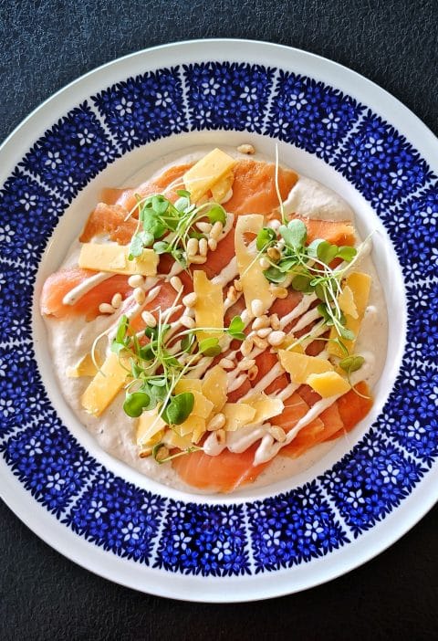 Herkullinen alkuruoka on muokattu Michael Björklundin kuuluisasta hirvicarpaccioreseptistä. Hirven sisäfileetä ei ole aina saatavana, joten päätin valmistaa carpaccion häränsisäfileestä. Annoksen mielenkiintoisin elementti on confiteerattu kananmunankeltuainen, joka sopii annoksen makumaailmaan täydellisesti. Sen valmistaminen voi kuulostaa hieman hankalalta, mutta valmistaminen kannattaa!