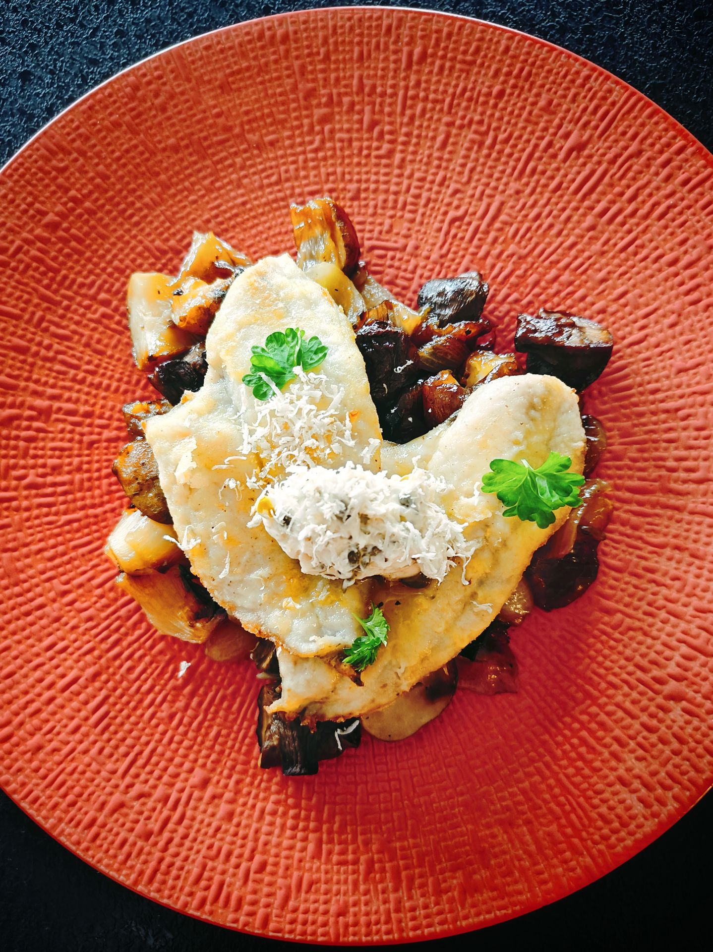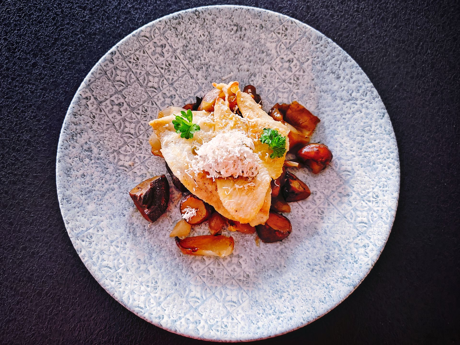 Voissa paistetuille ahvenfileille valmistetaan seuraksi uunissa paahdettuja maa-artisokkia, sipuleita ja herkkusieniä. Annoksen kruunaa herkullinen kapriksilla maustettu maustevoi sekä annosten päälle raastettu tuore piparjuuri.