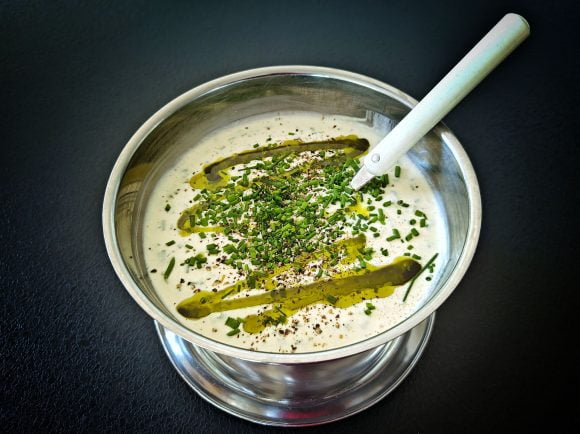 Viimeistele kermaviilikastike ruohosipulisilpulla, ripauksella mustapippuria ja lorauksella oliiviöljyä.