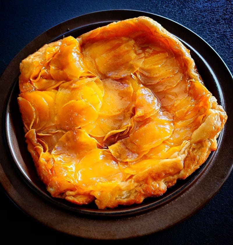 Mehevä myskikurpitsasta valmistettu keikauskakku, tarte tatin on herkuttelijan unelma. Uskomatonta, että kurpitsan maku sopii tähän legendaariseen ranskalaiseen kakkuun näin upeasti. Tarte Tatin syntyi vahingossa, kun Tatinin toinen sisaruksista poltti vahingossa voi-sokeriseoksen pohjaan.