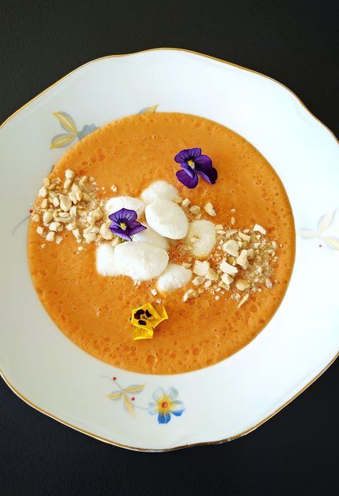 Gazpacho-keittoa ja mozzarellaa
