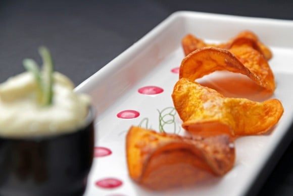 Bataattisipsit ja inkivääri-sitruunaruohodippi