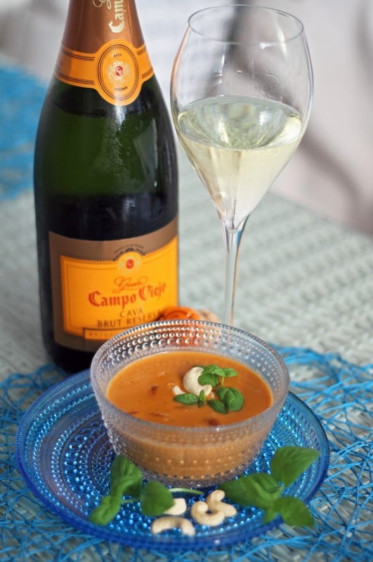 Kantarellikeiton kanssa tarjottavaksi soveltuu erinomaisesti raikas Cava. Campo Viejo Cava valmistetaan Penedeksen alueella, Sant Sadurí d´Anoian kylässä. Viini on valmistettu perinteisellä Cavan valmistustavalla, jossa viinin toinen käyminen tapahtuu pullossa.