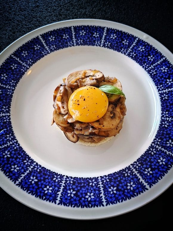 Herkullinen sienitartar valmistuu nopeasti ja sopii alkupalaksi tai kevyeksi lounaaksi. Sienet voit valita mieltymyksesi mukaan. Itse käytin valkoisia ja tummia herkkusieniä sekä siitakesieniä. Sienet paahdetaan pannulla ja maustetaan misotahnalla. Kananmunan keltuainen kruunaa annoksen.
