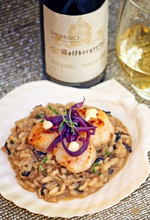 Kampasimpukka-sienirisotto