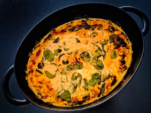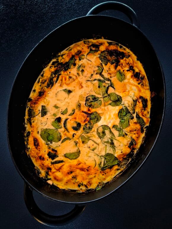 Kalapata juustoisella herkkusieni-pinaattikastikkeella
