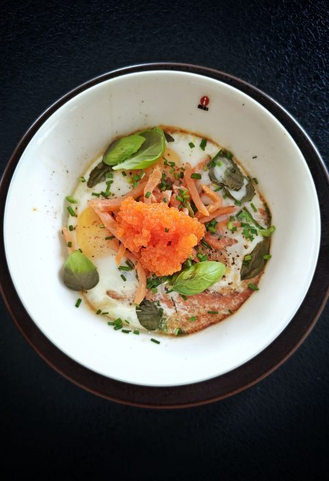 Paista kananrintafileet kuumalla paistinpannulla voi-öljyseoksessa. Fileitä paistetaan ainoastaan minuutti molemmilta puolilta. Nostele kauniinväriset fileet uunipellille ja laita ne uuniin kypsymään kymmeneksi minuutiksi (200°C). Annostele foliopaperin päälle 2 tl hyvälaatuista suolaa ja 1 tl vastarouhittua mustapippuria (yhtä fileetä kohden). Kääri kananrintafileet yksitellen tiukaksi kääröksi ja anna vetäytyä puoli tuntia. Jäädytä fileet ja leikkaa niistä ohuita siivuja.