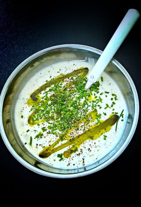 Leikkaa aurinkokuivatut tomaatit ja kaprikset pienen pieniksi kuutioiksi. Lisää ne majoneesiin.