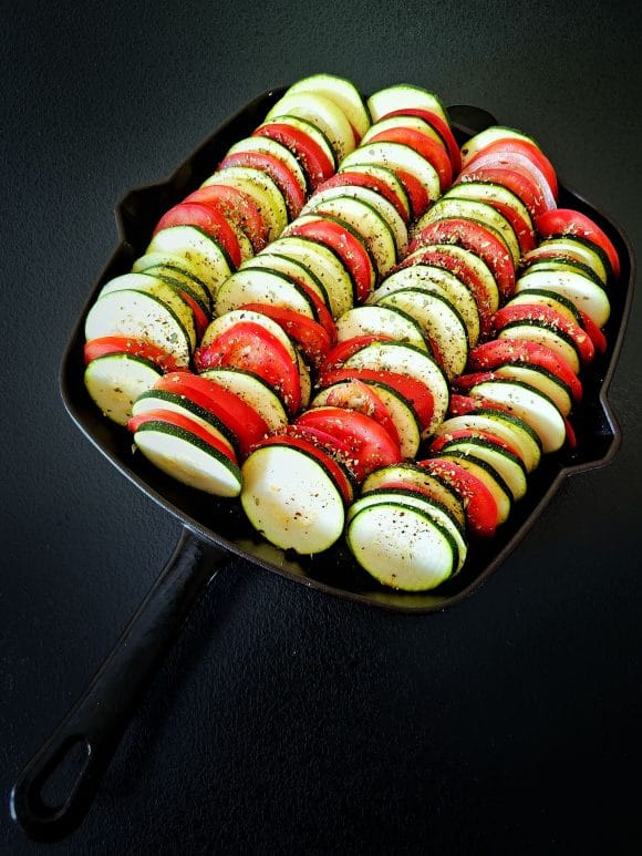 Kesäkurpitsa-tomaattipaistos on ilo silmille