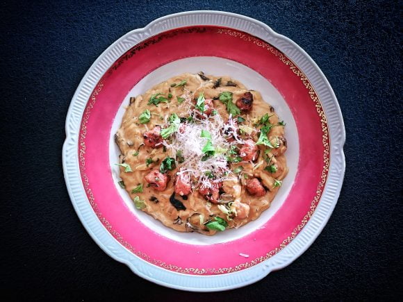Kreikkalainen makkarapullaorzotto on koko perheen suosikki