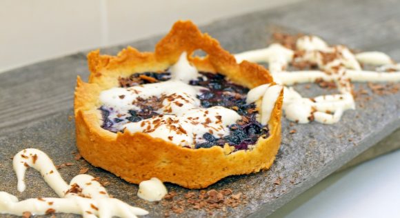 Herkullinen mustikkapiirakka ruskistutusta voista valmistetulla muropohjalla