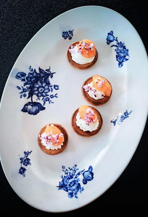 Nektariiniviipaleet ja lohitartar-katkarapuskagentahnaa (4 hlölle)