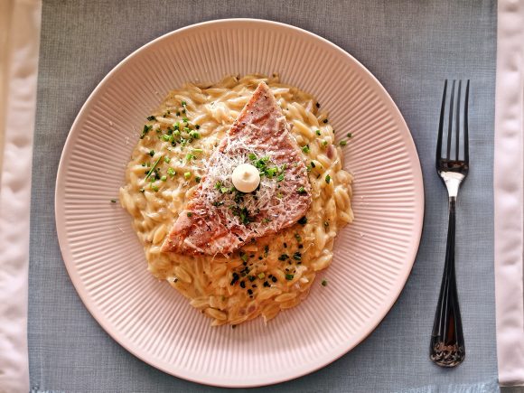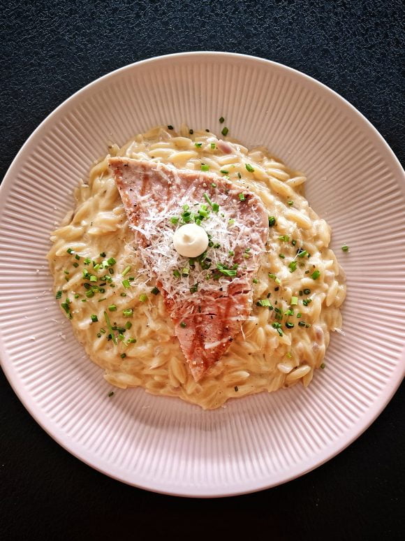 Orzo on italialaista alkuperää oleva pastatuote, joka muistuttaa ulkonäöltään riisiä, mutta on valmistettu vehnästä. Orzotto on tyypiltään risottomainen ruoka, joka sopii loistavasti kalan tai lihan lisukkeeksi. Toki orzotto maistuu ihan sellaisenaan!