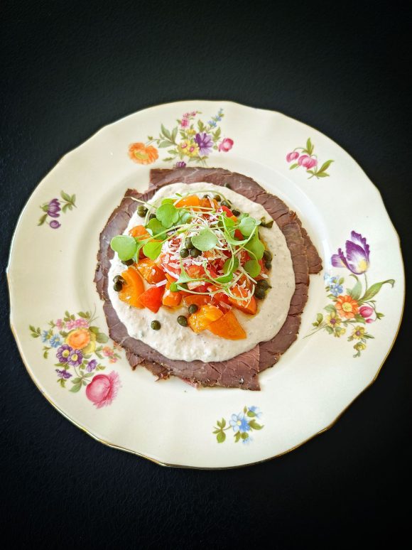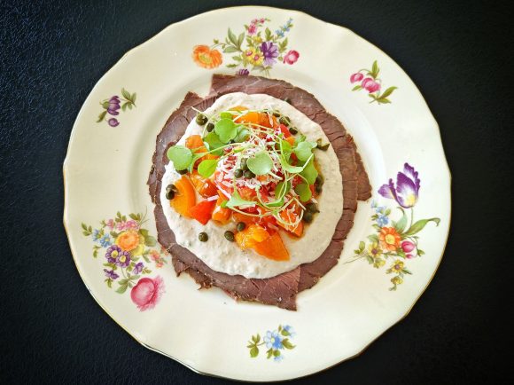 Paahtopaisti tonnato ja tuoreet aprikoosit (4 hlölle)