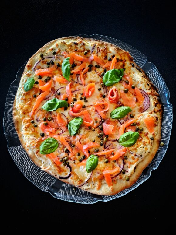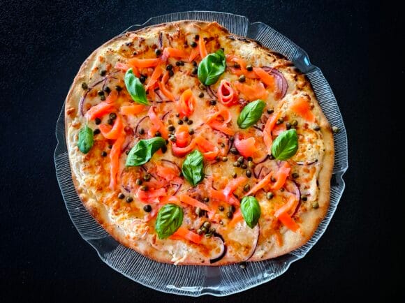 Kun unohdetaan tomaattikastike, ei se kuulosta perinteiseltä pizzalta. Erinomaisen pizzan voi ehdottomasti valmistaa myös toisin, valkoisena. Pohjan päälle levitettävä maistuva kastike tehdään crème fraîchesta. Pizza täytetään kylmäsavulohella, punasipulilla ja kapriksilla.
