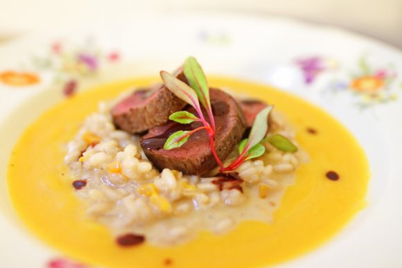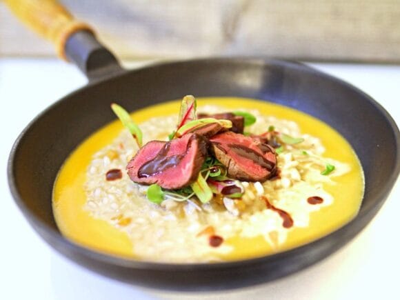 Kurpitsarisotto täydentää poron upeaa makua
