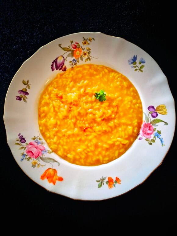 Risotto alla milanese on enemmän kuin pelkkä sahramilla maustettu riisiruoka – se on pala Pohjois-Italian historiaa lautasella. Legendan mukaan kirkon lasimaalaaja lisäsi sahramia riisiin todistaakseen, ettei mauste kuulu vain väriksi taiteeseen, vaan myös makuun. Tuloksena syntyi kullankeltainen, täyteläinen risotto, jossa yhdistyvät lihaliemen syvyys, voin ja parmesaanin samettisuus sekä sahramin hienostunut aromi.