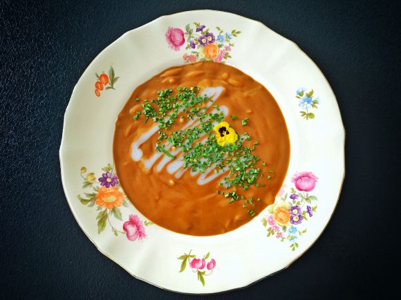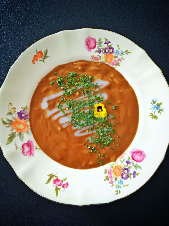 Annostele keitto lautasille sekä viimeistele tilkalla kookosmaitoa ja ruohosipulisilpulla.