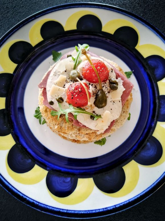 Italialainen herkkuruoka vitello tonnato muuntuu tässä reseptissä aivan upeaksi suolaliha tonnato sandwichiksi. Reseptissä paahtoleipä kaulitaan aivan ohueksi ja sen päälle kootaan suolalihaa, tonnatokastiketta, parmesaania, kapriksia ja kirsikkatomaatteja.