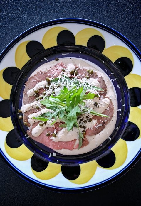 Kuullota sipulisilppu voissa padan pohjalla. Lisää ohueksi vuoltu käristeliha ja olut. Anna kypsyä hiljalleen kannen alla puolisen tuntia. Lisää sulatejuusto nokareina kuumaan lihaliemeen. Kun juusto on sulanut, kaada seos pataan, ja lisää sekaan pieniksi kuutioidut perunat. Keitä perunat kypsiksi, ja lisää lopuksi keittoon pieniksi kuutioiksi leikattu leipäjuusto ja kylmäsavuporo. Mausta mustapippurilla ja tarvittaessa suolalla sekä ripottele pinnalle tuoretta persiljaa.