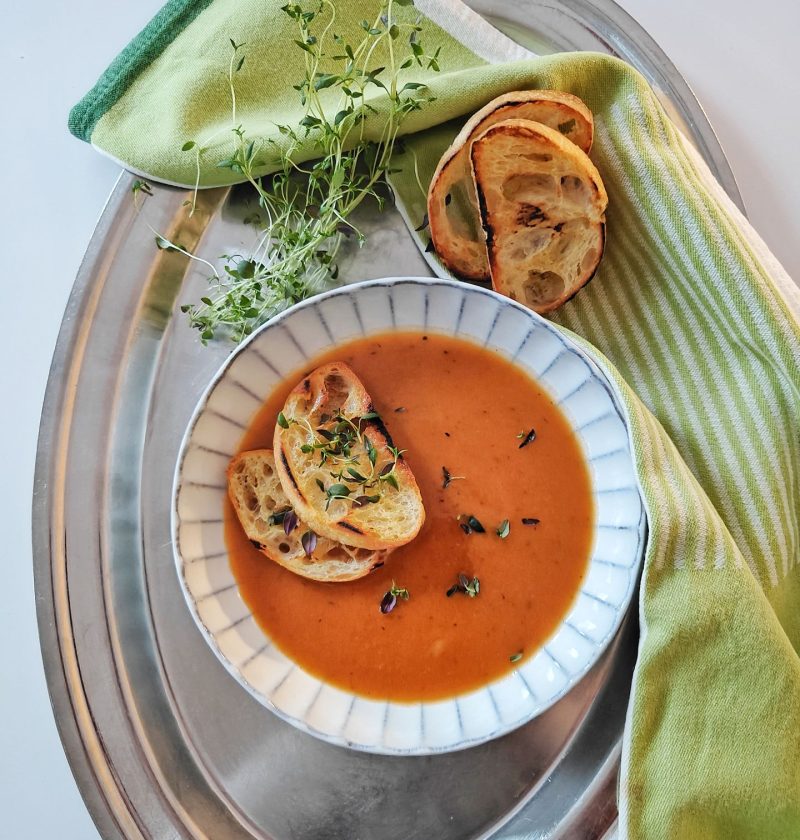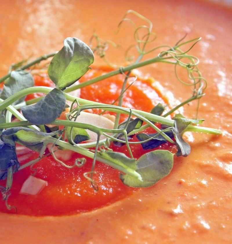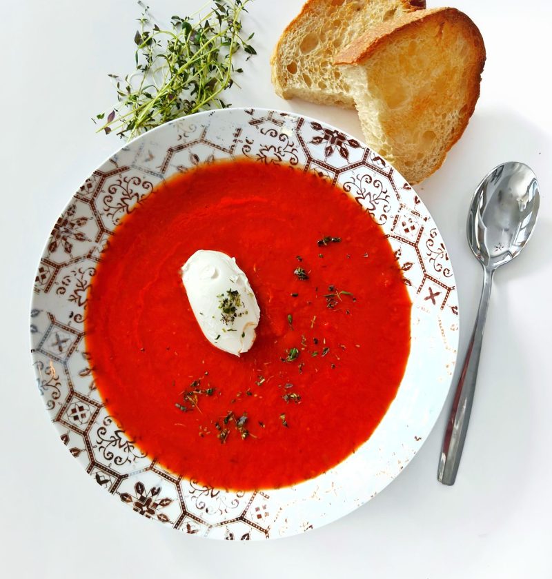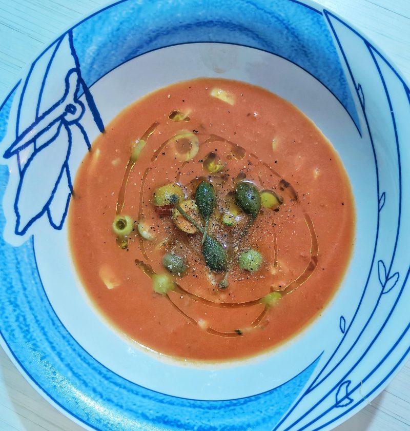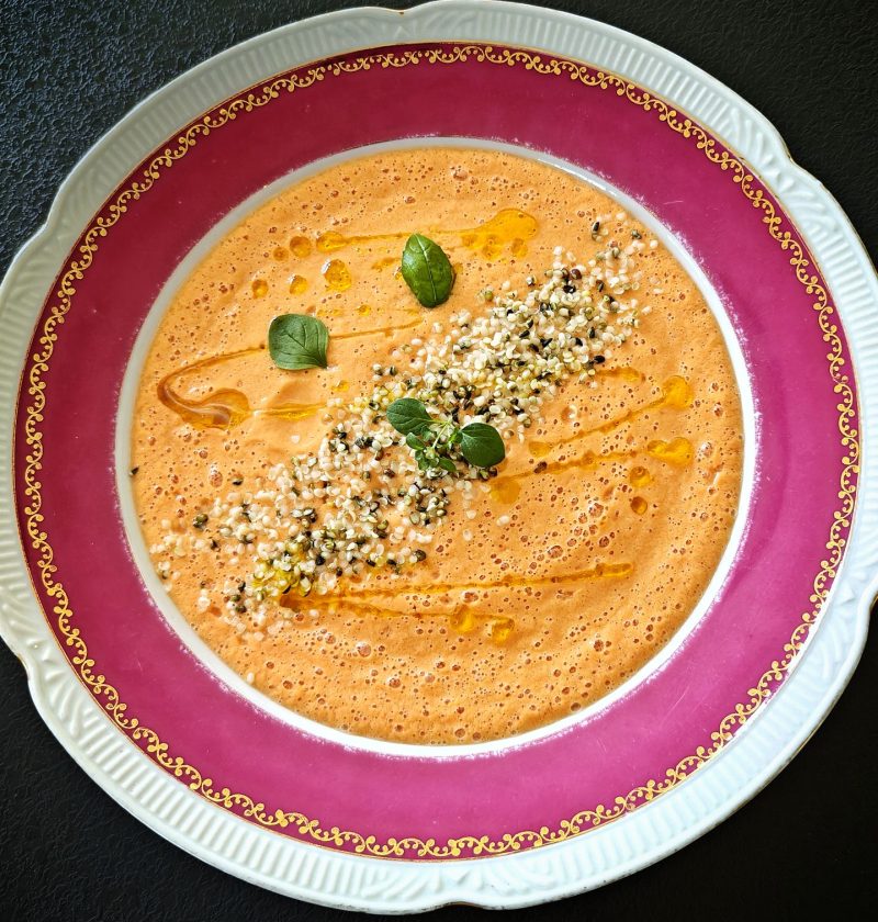 Viilennetty vesimeloni-gazpachokeitto on kesäruokaa parhaimmillaan. Sen valmistuksessa ei ole käytetty vaaleaa leipää, sillä keiton suurustus onnistuu loistavasti myös cashewpähkinöillä. Herkullinen keitto sopii moneen; alkupalaksi, lounaaksi tai välipalaksi.