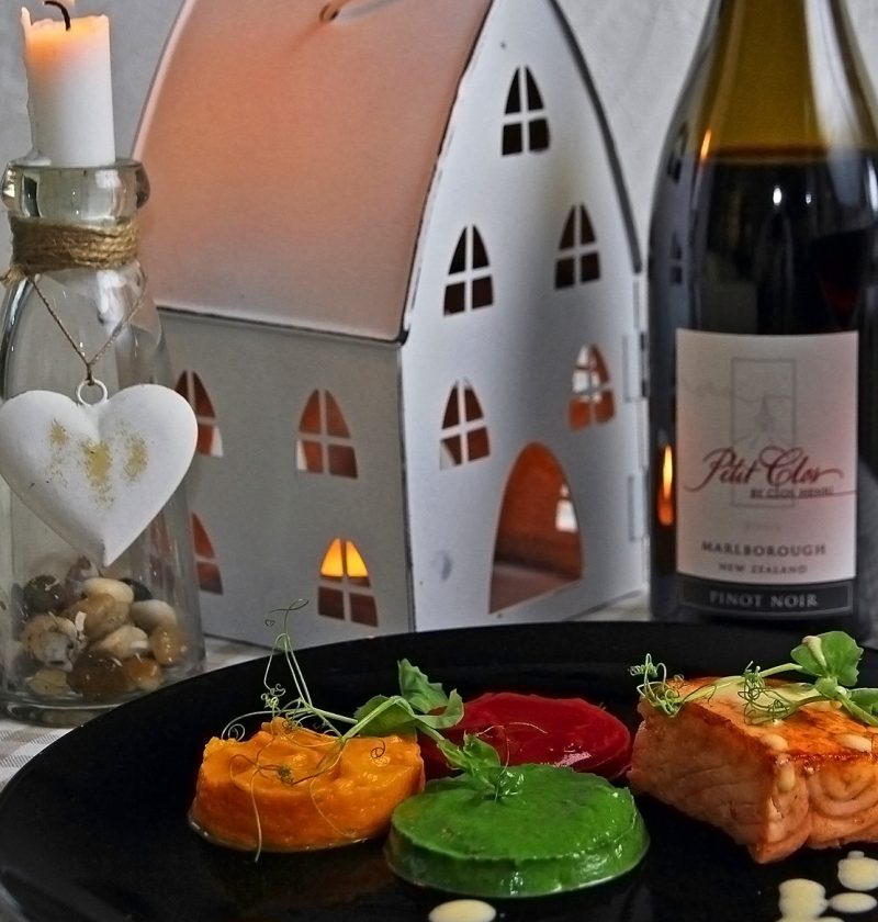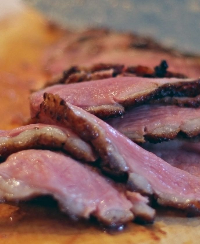 Sorsanrinta saa annoksessa rinnalleen mustajuurta kahdessa eri muodossa, paahdettuna ja pyreenä. Mustajuuren maku on pehmeä ja monimuotoinen. Maku muistuttaa hyvin paljon maa-artisokkaa. Karpalo-punaviinikastike kruunaa herkullisen juhla-annoksen.
