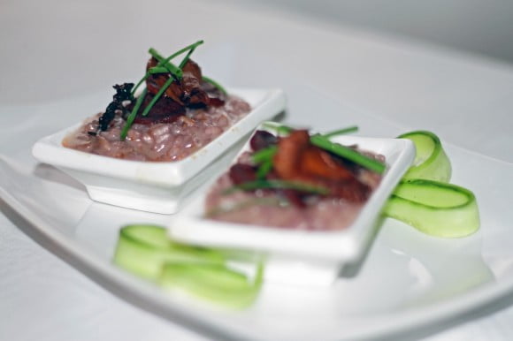 Tämä risotto maustetaan viehkeän punaisella ja aromaattisella Pinot Noir –rypäleistä valmistetulla punaviinillä sekä maistuvalla chorizomakkaralla ja sienillä.