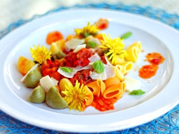 Aromaattinen ja herkullinen tomaattikastike kruunaa päivän. Tomaatti on lähtöisin Etelä-Amerikan Andien ja Tyynen valtameren väliseltä kapealta alueelta. Intiaanit käyttivät villitomaattia ravintokasvina jo 500 eKr. Kolumbuksen retkikunta toi tomaatin Espanjaan toiselta löytöretkeltään vuonna 1498. Euroopassa tomaattia pidettiin pitkään koristekasvina, koska hedelmiä pidettiin myrkyllisenä. Tomaattia pidettiin myös lääkekasvina, jolla uskottiin olevan vaikutusta rakkauselämään. Nykyisin tomaatti on saavuttanut arvostetun aseman kaikkialla maailmassa. Siitä on tullut maailmassa eniten viljelty vihannes.