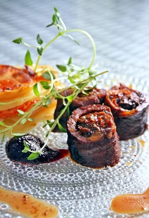 Kuori sipulit (sipuli ja valkosipulit) ja leikkaa ne paloiksi. Huuhtele ja pilko herkkusienet paloiksi. Kuullota sipuli- ja herkkusienipaloja kattilassa tilkassa oliiviöljyä 5 minuuttia. Lisää kattilaan kirsikkatomaatit, tomaattimurska, paseerattu tomaatti, kasvisliemi, punaviinietikka, lihaliemikuutio ja rouhittu mustapippuri. Keitä keittopohjaa kasaan puolisen tuntia.