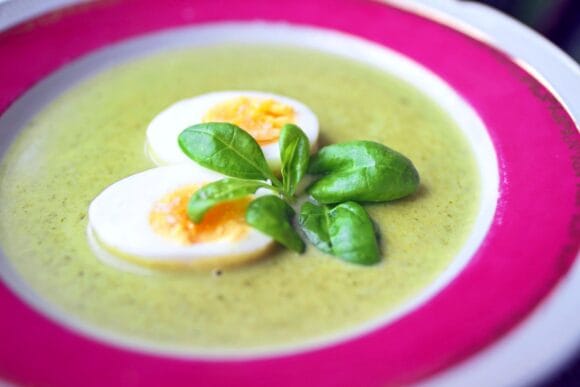 Tarjoile pinaattikeitto kovaksi keitettyjen munien kera.