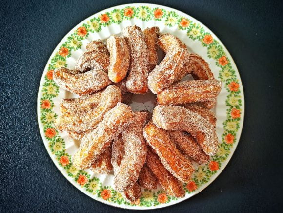 Churrot eli espanjalaiset munkkitangot maustetaan tänä vuonna lakritsijauheella ja vaniljasokerilla. Churrojen taikina valmistetaan tuulihattutaikinan tapaan ja ne paistetaan rapeiksi öljyssä. Lisäksi valmistetaan kinuskinmakuinen kermavaahtodippi. Suosittelen kokeilemaan!