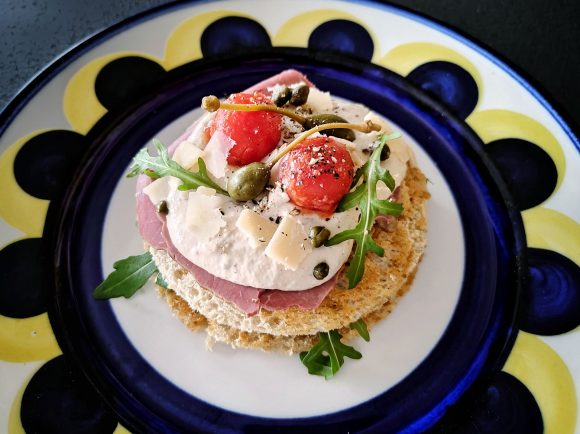 Italialainen herkkuruoka vitello tonnato muuntuu tässä reseptissä aivan upeaksi suolaliha tonnato sandwichiksi. Reseptissä paahtoleipä kaulitaan aivan ohueksi ja sen päälle kootaan suolalihaa, tonnatokastiketta, parmesaania, kapriksia ja kirsikkatomaatteja.
